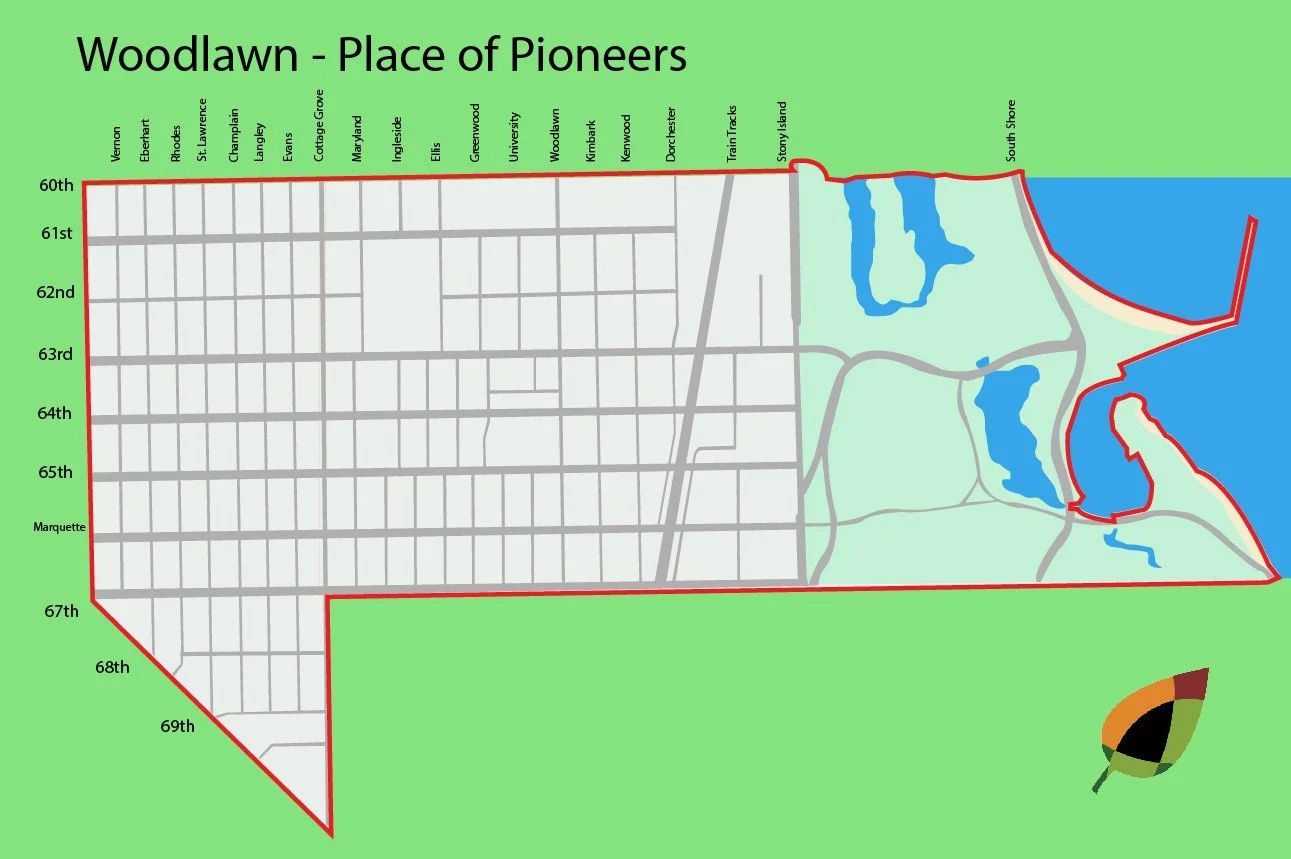 The community area is bounded by the lake to the east, 60th Street to the north, King Drive to the west and 67th Street to the south, and a small area that lies south of 67th Street between Cottage Grove Avenue and South Chicago Avenue. Locals sometimes divide the neighborhood along Cottage Grove into East and West Woodlawn.
